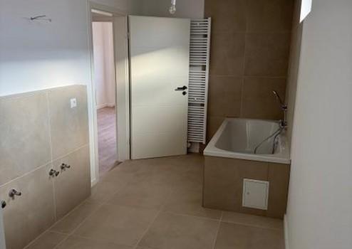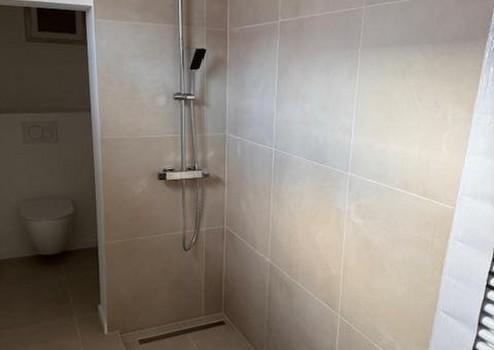Das Badezimmer wurde als modernes, begehbares Bad ausgeführt und in zwei klar getrennte Bereiche unterteilt. Neben dem großzügigen Duschbereich verfügt das Bad über eine separate Badewanne, was sowohl funktional als auch optisch höchsten Ansprüchen gerecht wird.