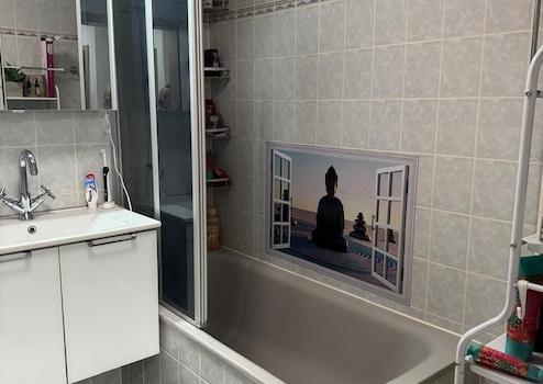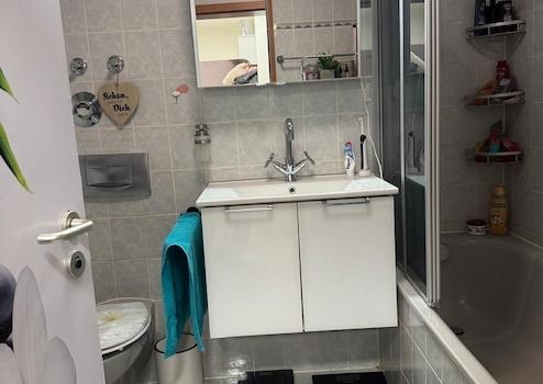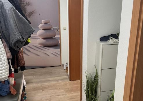 - Ein geräumiger Flur zum Badezimmer mit Platz zwischen Wohnbereich und Bad inkl. einer Abstellnische
