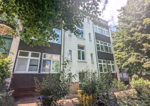 Zum Verkauf steht diese Dreiraumwohnung im Hochparterre, die eine Wohnfläche von ca. 65 m² bietet. Sie befindet sich in einem denkmalgeschützten Wohnhaus aus dem Jahr 1912, das insgesamt acht Wohneinheiten umfasst, von denen die meisten von Eigentümern bewohnt werden.