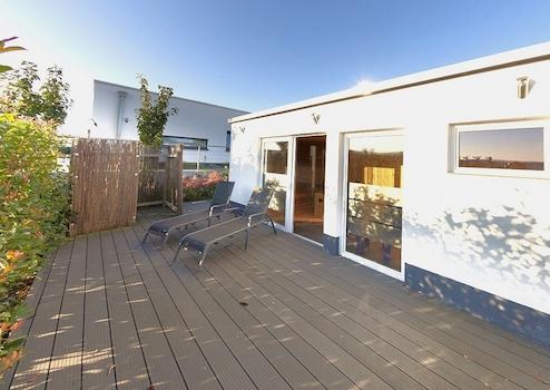 Ein ca. 28 m² großer Wintergarten, der vom Wohnzimmer und einem Schlafzimmer aus betreten werden kann, bringt Entspannung und Behaglichkeit für Sie und Ihre Gäste!