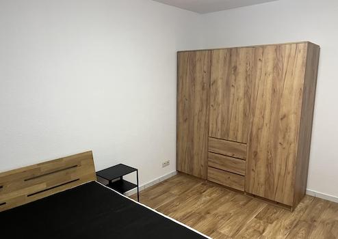 Die Wohnung wird voll möbliert vermietet. Zur Ausstattung gehören ein Sofa, ein Esstisch mit Stühlen, eine Kommode, ein Bett sowie ein geräumiger Kleiderschrank.