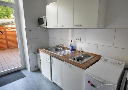 - Einbauküche mit Kühlschrank, Herd, Mikrowelle, Waschmaschine