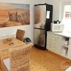 Sehr helle und freundliche Wohnung im 1. OG eines alten Speichers in idyllischer Lage auf Reiterhof in Lehrte. Eigener Eingang über Außentreppe. Wohnraum mit 2 Sesseln, Tischchen, Regalen, Smart-TV (noch nicht auf Bild ...