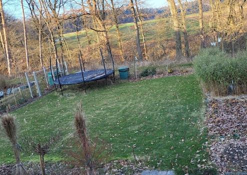 - Große Süd-/West-Terrasse (ca. 60 m²) mit Gartennutzung inkl. Trampolin und Sandkasten