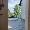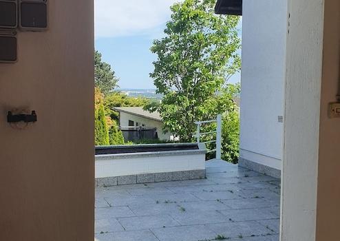 Ebenfalls noch im Kellergeschoss befindet sich eine kleine integrierte Zweizimmerwohnung (für größere Kinder, Haushaltshilfe oder Großeltern mit sep. Eingang aber auch Zugang zu Haupthaus) mit der Möglichkeit für eine Kochnische, neuem Duschbad und Klimaanlage. Es besteht auch die Option durch den Kellerflur ins Erdgeschoss zu gelangen. Der direkte Zugang zur Gartenterrasse und Garten rundet das Kellergeschoss ab.