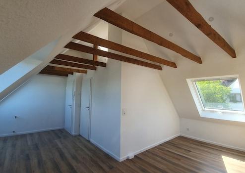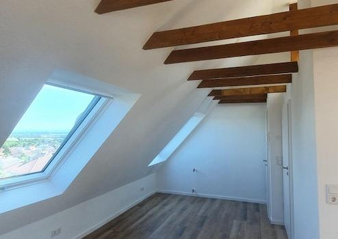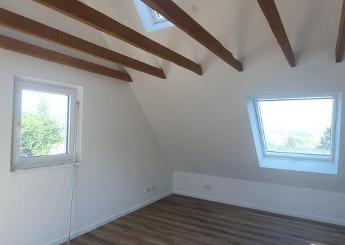 In der zweiten Etage befindet sich das Dachgeschoß mit großem Wohn / Schlafraum, neuem Bad und herrlichem Blick über das Rhein Main Gebiet.