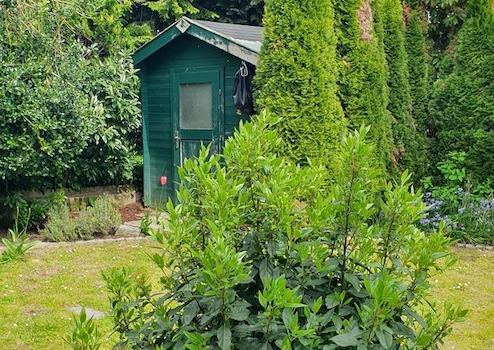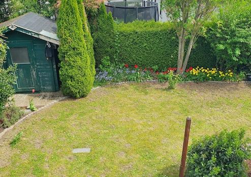 Ein kleiner gepflegter Garten mit Gartenhäuschen sowie ein Vorgarten mit großzügiger Sonnenterrasse lassen viel Raum für Kinder. Dieser uneinsehbarer Vorgarten bietet zusätzliche Privatsphäre. Zusätzlich gibt es zwei weitere Terrassen hinter dem Haus.