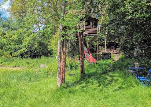 Großzügiges Grundstück mit altem Baumbestand (Eichen, Buchen, Birken, Linden). Der naturnahe Garten bietet Platz für eigene Nutzgartenbereiche – ideal für Selbstversorger.