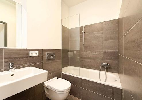 Das modern gestaltete Badezimmer verfügt über eine Badewanne, einen Waschmaschinenanschluss sowie zeitlose Fliesen. Der Wohn- und Kochbereich ist großzügig geschnitten und bietet viel Platz für Ihre individuellen Vorstellungen. Große Fensterflächen sorgen für viel Helligkeit und eine freundliche Atmosphäre.