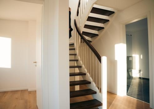 Über eine offene Treppe erreicht man die obere Etage, die durch ein lichtdurchflutetes Wohnzimmer besticht. Von hier aus hat man Zugang zu einem weiteren Balkon in Ostausrichtung sowie zur großzügigen Dachterrasse mit Westausrichtung. Diese bietet einen einmaligen Blick über die Dächer der Stadt und auf die Osnabrücker Skyline – ein perfekter Ort zum Entspannen, Genießen und Verweilen.