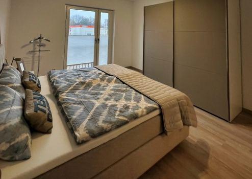 Das Schlafzimmer bietet mit seiner Raumgröße vielfältige Möglichkeiten für eine individuelle Möblierung, einschließlich eines großzügigen Kleiderschranks.
