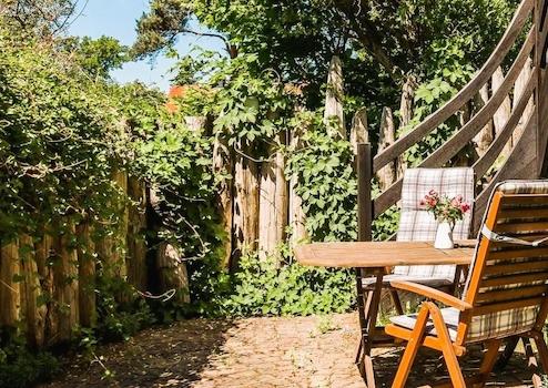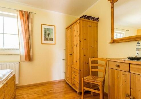 zum nur 80 Meter entfernten Boddenzugang auf dem Deich oder dem 100 Meter entfernten “kleinen Hafen” von Wieck, in dem man bei einem schönen Glas Wein das maritime Flair fußläufig genießen kann.