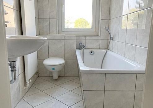 - Badezimmer mit Fenster und Badewanne