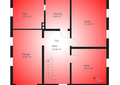 Ein Vollkeller bietet umfangreiche Abstell- und Nutzflächen und erweitert das Platzangebot erheblich.