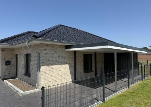 Der barrierefreie Bungalow verfügt über einen Dachboden über die gesamte Wohnfläche, einen großzügigen Carport mit separatem Geräteraum sowie eine überdachte Terrasse, die zum Verweilen einlädt.