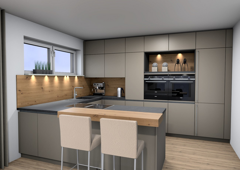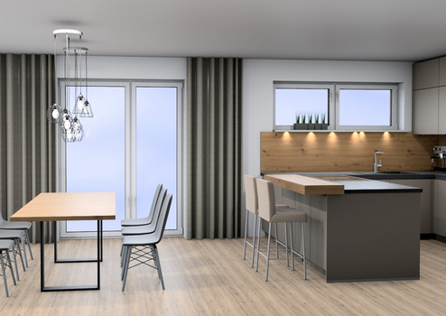 - offenes Wohnzimmer mit U-Einbauküche inkl. Tresen