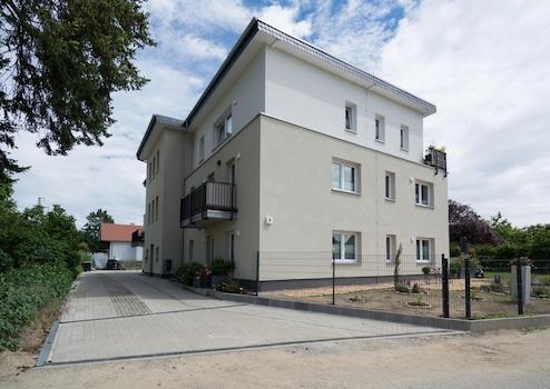 Neubau-Mehrfamilienhaus mit neun Mietwohnungen mit schwellenlosem Zugang und Aufzug, fertiggestellt 2023.