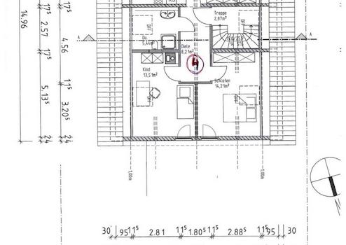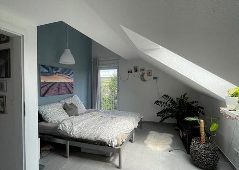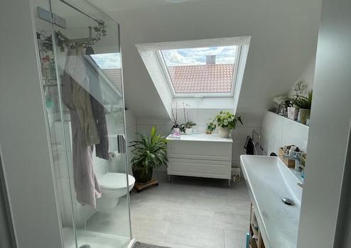 Sie befindet sich im Dachgeschoss eines 1964 erbauten Hauses, welches 2019 komplett entkernt und alle Gewerke, vom Dach bis zur Heizung, Fenster, Elektrik, Sanitär komplett saniert wurde.