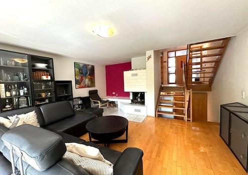 Im Erdgeschoss befindet sich das großzügige Wohnzimmer mit einem Kaminofen und das Esszimmer mit angeschlossener Küche. Das 1. Obergeschoss umfasst zwei Schlafzimmer sowie zwei Badezimmer. Vom Hauptschlafzimmer gelangen Sie auf den herrlichen Sonnenbalkon. Im 2. Obergeschoss befindet sich ein weiteres Schlafzimmer. Im Untergeschoss befindet sich neben einem Kellerraum noch der Haustechnikraum. Der Keller hat zudem ein separaten Zugang.