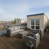 Eine markante Innentreppe führt in die obere Ebene, wo eine atemberaubende Dachterrasse auf Sie wartet. Von hier aus genießen Sie einen Panoramablick über die Berliner Skyline, einschließlich des Fernsehturms und des neuen Amazon Towers – eine inspirierende Kulisse zum Essen, Entspannen oder geselligen Beisammensein über den Dächern der Stadt.