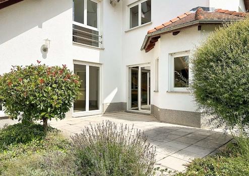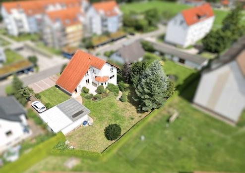 Sofort verfügbar: Architektenhaus mit sonniger Terrasse, zwei Garagen und idyllischem Gartenbereich