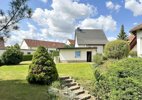 Zum Haus gehört eine angrenzende Garage mit elektrischem Rolltor sowie eine weitere, freistehende Garage auf dem Grundstück. Zusätzlich stehen drei weitere Außenstellplätze zur Verfügung. Der liebevoll angelegte Außenbereich mit Süd-Terrasse lädt zum Entspannen und Genießen ein.