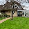 Das stattliche Wohnhaus liegt in der Mitte eines parkähnlichen Grundstücks, das man über einen Privatweg erreicht. Aus allen Räumen des modernisierten Hauses blickt man durch große Fenster auf das einladende Außengelände, zu dem Rasenflächen, zwei Teiche, drei Terrassen, gepflasterte Wege sowie ein großzügiger Parkplatz und eine lange Auffahrt zu einem Nebenhaus gehören.