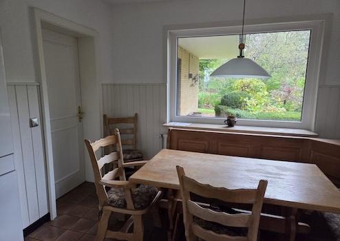 Das EFH liegt umgeben von alten Bäumen und großzügigen Gartenanlagen der Nachbarn in ruhiger, aber dennoch zentraler Lage im Ort. Ein Supermarkt sowie Friseur, Kirche, Gärtnerei, öffentliche Verkehrsmittel usw. sind in 700 m fußläufig zu errreichen, Ärzte und Zahnärzte in 500m.