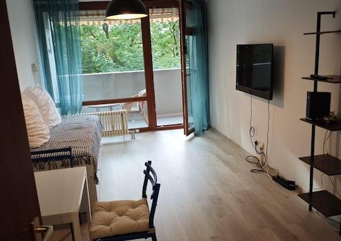1 Zimmer Wohnung , möbliert, mit separater Einbauküche, Bad mit Wanne, Balkon, Tiefgaragenstellplatz. Ein direkter Zugang vom Erdgeschoss, oder die Möglichkeit die Wohnung mit dem Aufzug zu erreichen ( von der Tiefgarage z.B.) Im Gebäude gibt es Schwimmpool und Sauna ( Zugang beim Hausmeister zu beantragen ). Wäschewaschen ist im Waschkeller möglich.