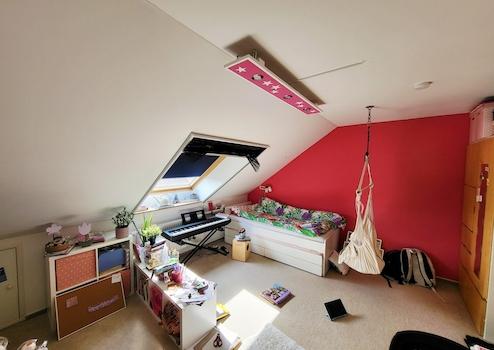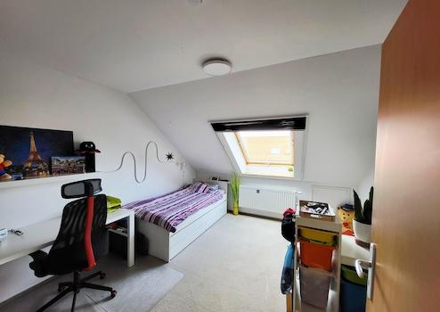 Ober- und Dachgeschoss wurden 2021 renoviert. Hier befinden sich im Obergeschoss drei Schlafzimmer und ein Badezimmer mit Badewanne und Dusche. Im Dachgeschoss befindet sich neben zwei hellen Schlafzimmern auch die Gastherme mit einem Warmwasserspeicher von 300 Liter.