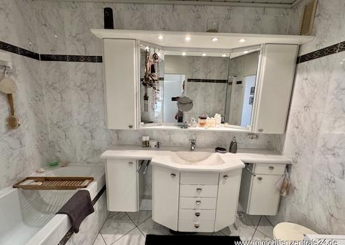 Ein modernisiertes Bad mit Badewanne sowie ein separates Gäste-WC ergänzen das durchdachte Wohnkonzept.