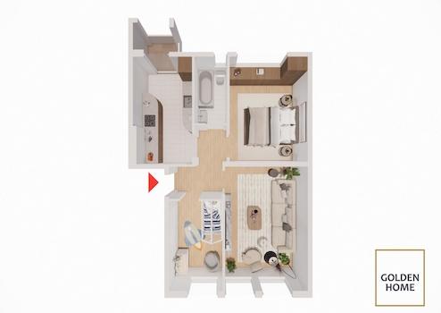 Es handelt sich hier teilweise um maßstabsgetreue Fotos, welche mit KI bearbeitet wurden. So oder so ähnlich könnte der Raum mit neuer Einrichtung aussehen. Die aktuellen Möbel können optional übernommen werden.