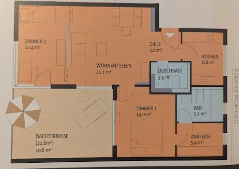 Coloneo: Hochwertige 2,5-Zi-Penthouse-Wohnung mit Dachterrasse