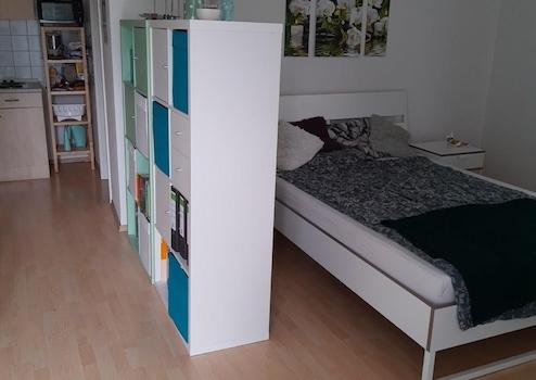 Wir haben ab 01.03, 15.03. oder 01.04.2026 in der Zeppelinstraße, Nähe Uni Campus, Rewe Supermarkt und Zoo, eine 1-Zimmerwohnung mit Terrasse und Dusche neu zu vermieten.