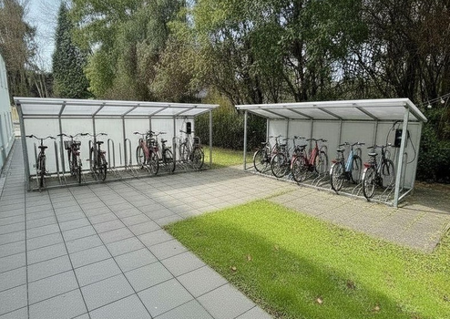 • Moderne Bike Station mit E-Ladestation für E-Bikes