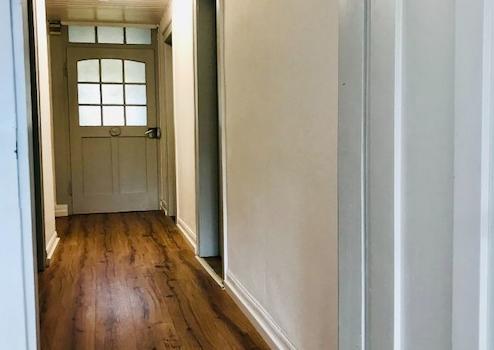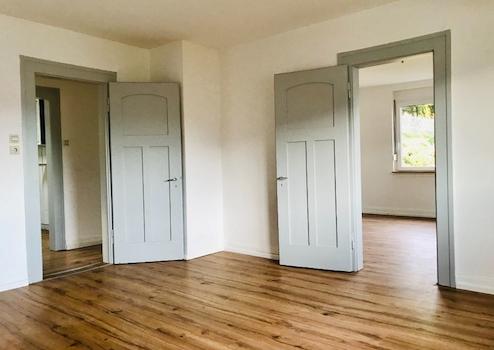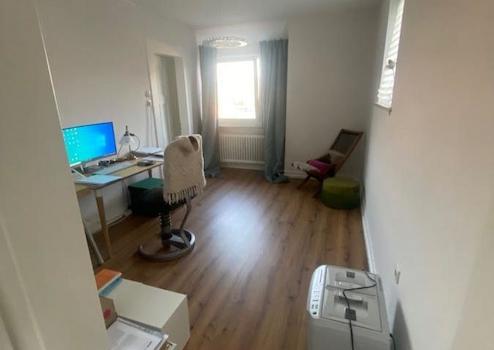 Alle Räume und der Flur, ausser dem Bad sind mit einem optisch ansprechenden Holz Laminatboden ausgelegt und viel Tageslicht gelangt über mehrere Isolierfenster in die Zimmer.