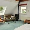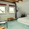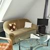 Wohn/Schlafraum mit Bett 140x200 cm, Kleiderschrank, Vitrinenschrank, Sofa, Sessel mit Couchtisch, Kabel-TV, Stereoanlage, Einbauschränke in der Schräge, Teppichboden.
