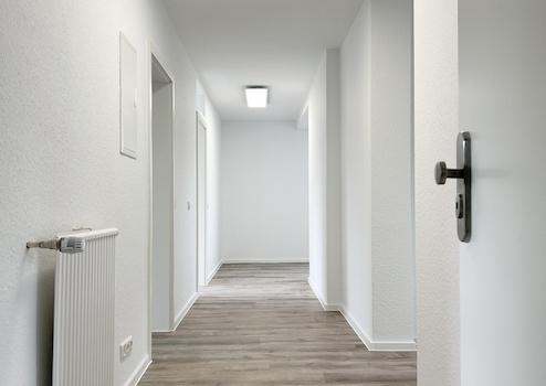 + helle Fußbodenfliesen, weiße Türen u. Venylboden