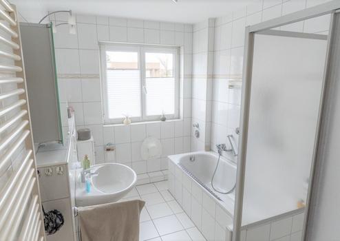 Badezimmer: Tageslichtbad mit Badewanne und Dusche