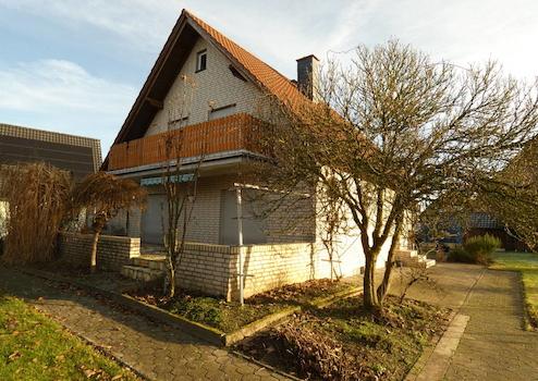 Dieses Einfamilienhaus befindet sich in einer ruhigen Wohnsiedlung, am Ende eines Wendehammers in einer Anliegerstraße in Dissen am Teutoburger Wald, im südlichen Landkreis von Osnabrück in Niedersachsen.