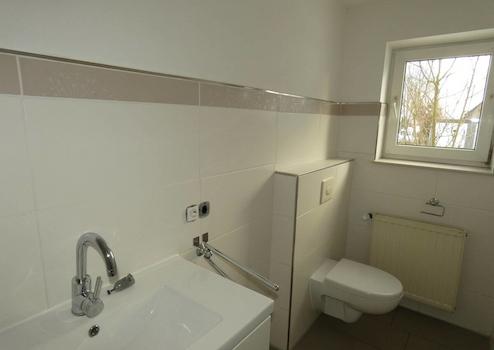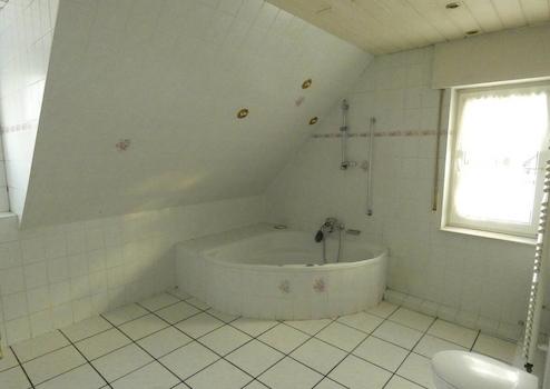 Das Haus ist baujahrgerecht ausgestattet und bedarf der Zeit geschuldet einer Renovierung. Der Wohnkomfort wird durch insgesamt zwei Badezimmer mit Tageslichtfenstern auf beiden Ebenen erhöht und sorgt für Bequemlichkeit bei Familie oder Gästen. Im Erdgeschoss gibt es eine moderne ebenerdige Dusche und im Obergeschoss ist das Bad mit einer Eckbadewanne und Doppelwaschbecken ausgestattet.