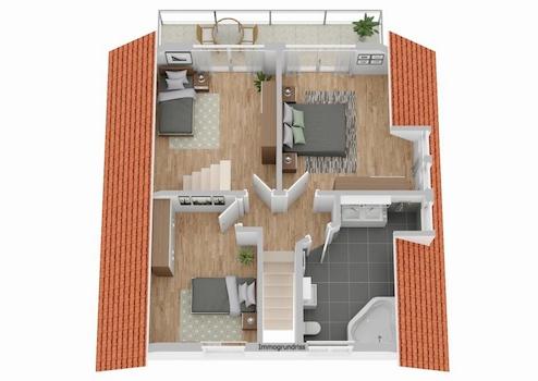 Im Spitzboden sind die vorhandenen Räumlichkeiten gut zur Nutzung als Arbeits- und/oder Spielzimmer oder als Hobbyraum vorstellbar.