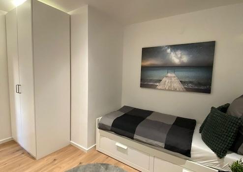 Einziehen und wohlfühlen – alles ist bereits da! Die Wohnung ist vollständig möbliert mit Bett, Schrank, Stauraum und moderner Einbauküche. Auch das Badezimmer ist komplett ausgestattet. Einfach Koffer auspacken und einziehen.