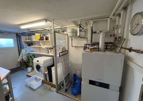 Der Keller überzeugt mit einer Waschküche, einem zusätzlichen Raum (z. B. für Hobby oder Lager) und einem weiteren Bad mit Badewanne – ideal für Familien oder Gäste.