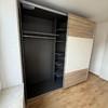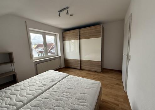 Das einladende Schlafzimmer bietet Platz für ein Doppelbett, einen geräumigen Kleiderschrank und sogar einen Arbeitsbereich – ideal für modernes Wohnen.