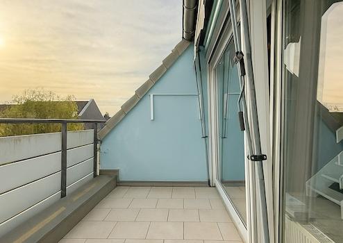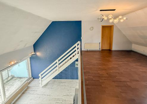Die großzügige Maisonettewohnung liegt in einem Wohn - und Geschäftshaus aus dem Baujahr 1986 und erstreckt sich über das 3. Obergeschoss und das Dachgeschoss. Ca. 108 m² Wohnfläche verteilen sich auf zwei Ebenen.