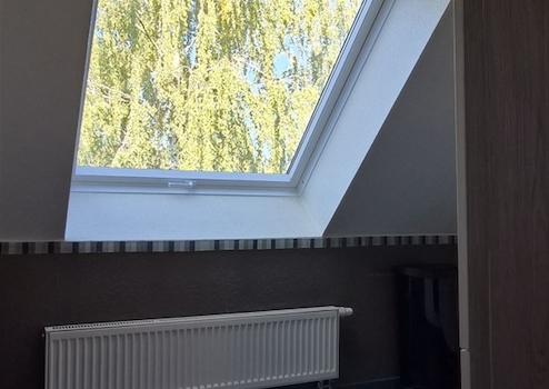 # große Dachflächenfenster (erneuert 2014) mit Verdunklungsrollos und