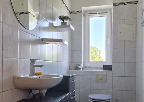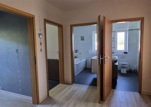 in Wohn- + Schlafzimmer jeweils mit elektrischen Außenrollläden