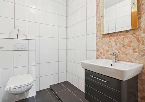 Das moderne Badezimmer überzeugt mit zeitgemäßem Design, ergänzt durch ein separates Gäste-WC. Ein im Kaufpreis enthaltener Garagenstellplatz sorgt für zusätzlichen Komfort.