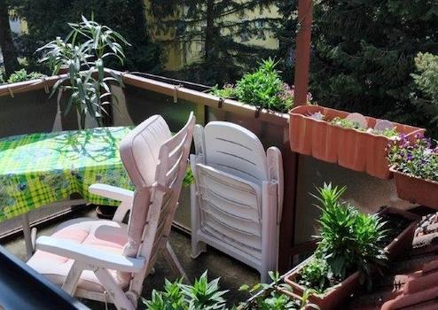 Im Jahr 2000 wurde ein Schüco-Alu-Balkon in der Größe 2m x 3,5m neu erstellt 2000. Dieser ermöglicht einen erhabenen Blick auf die Umgebung.